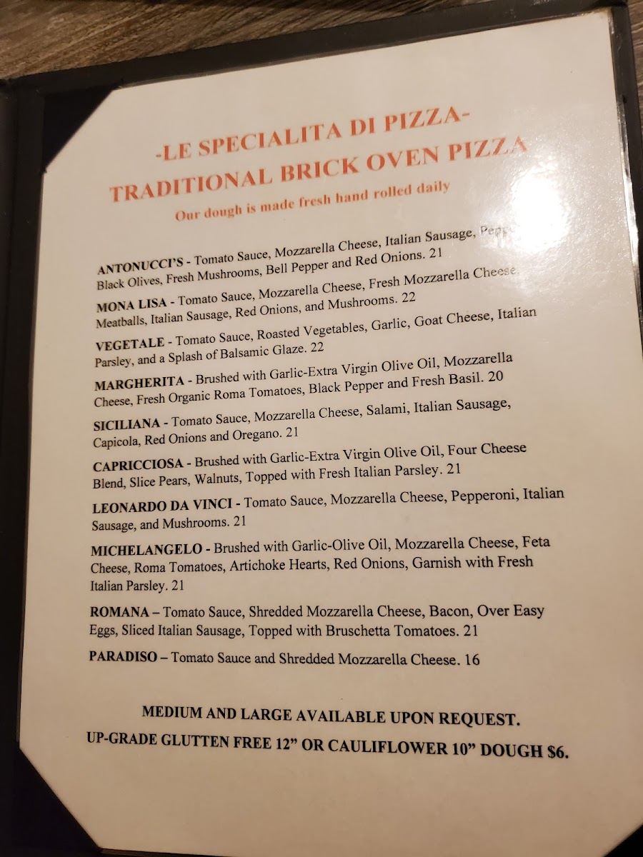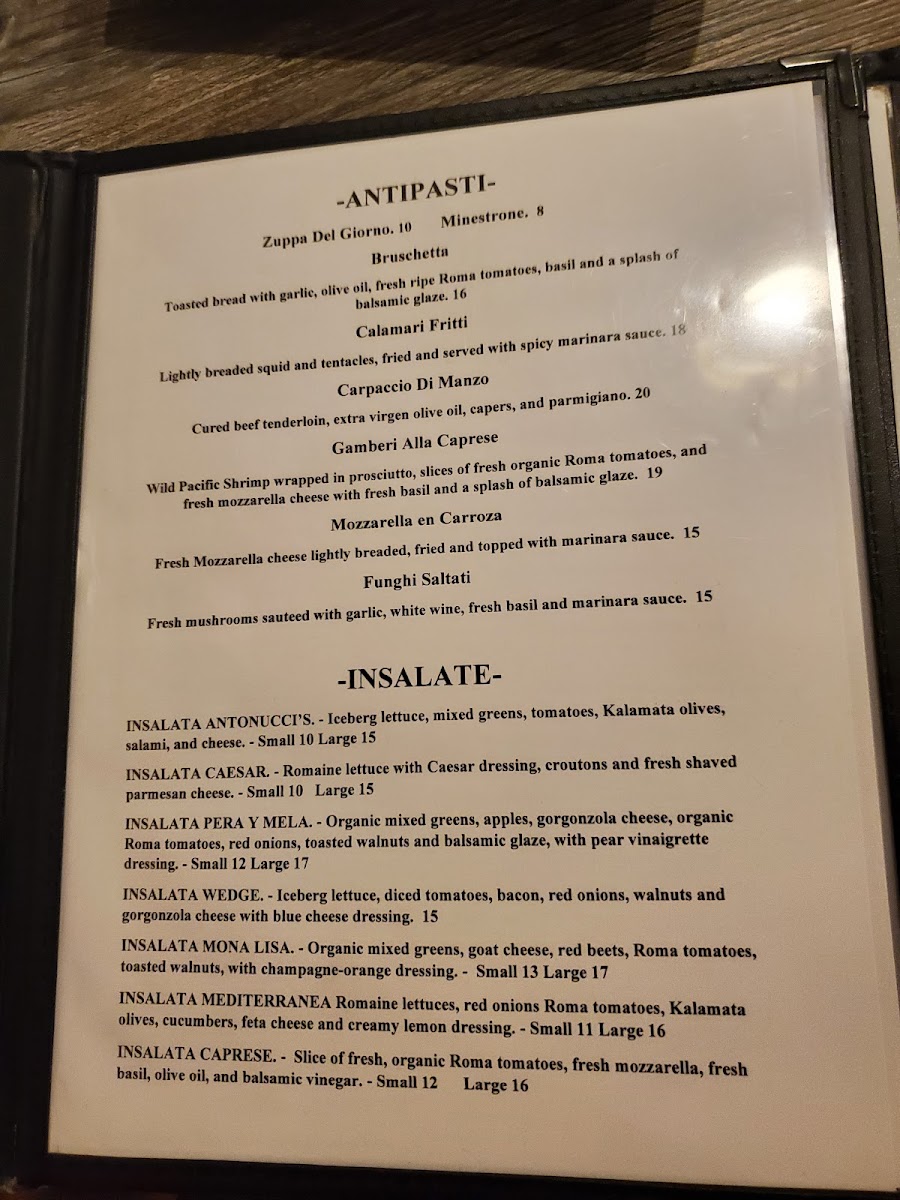 Antonucci's Italian & Seafood Restaurant Menu